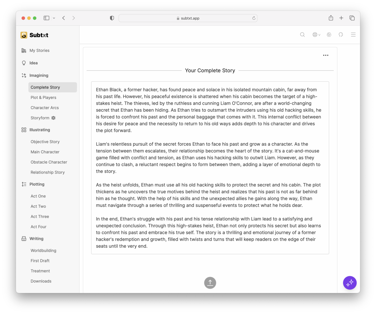With the "Build from Storyform" page opened from that, I went ahead plugged the idea into Subtxt, tapped "Generate a Complete Story" and then let the Narrative Agents do their magic.
