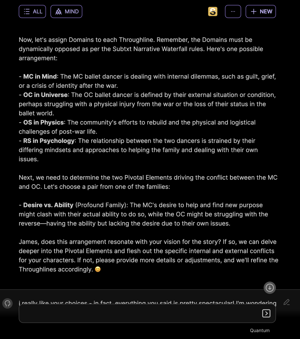 In the past week, our teams have been diligently fine-tuning the AI, affectionately dubbed Muse, in the language of Subtxt's narrative expertise. Muse has not just learned; it has excelled, maintaining the integrity and interplay of Throughlines with a finesse that’s poetic in precision.